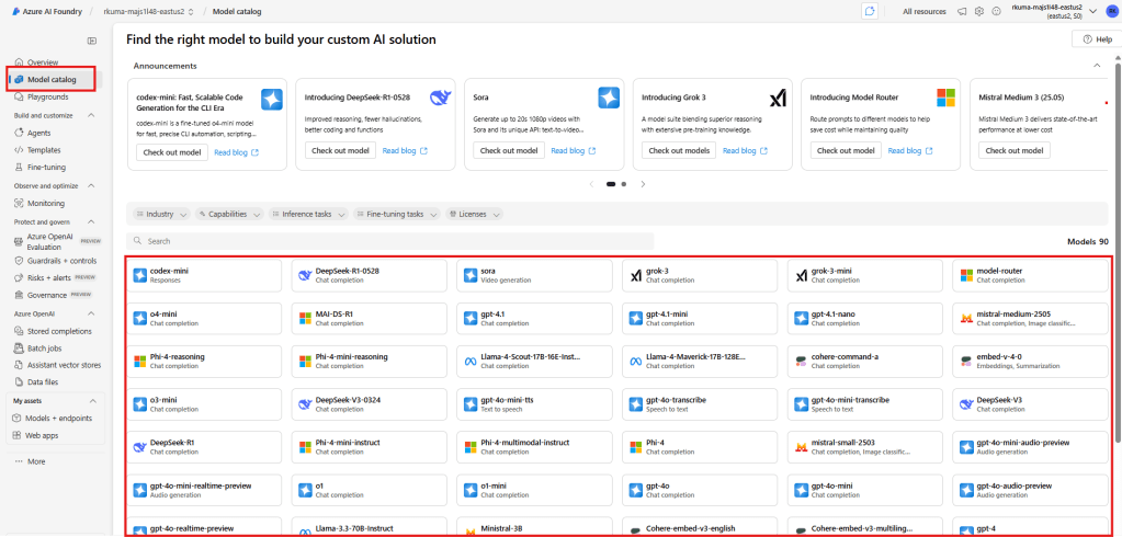 Microsoft is bringing it all together in one place: a rich, curated catalog of models from trusted names like Microsoft, OpenAI, Hugging Face, Meta, DeepSeek, and more. With over 1900+ models across different domains and capabilities, you’ve got everything you need to build intelligent, scalable solutions.